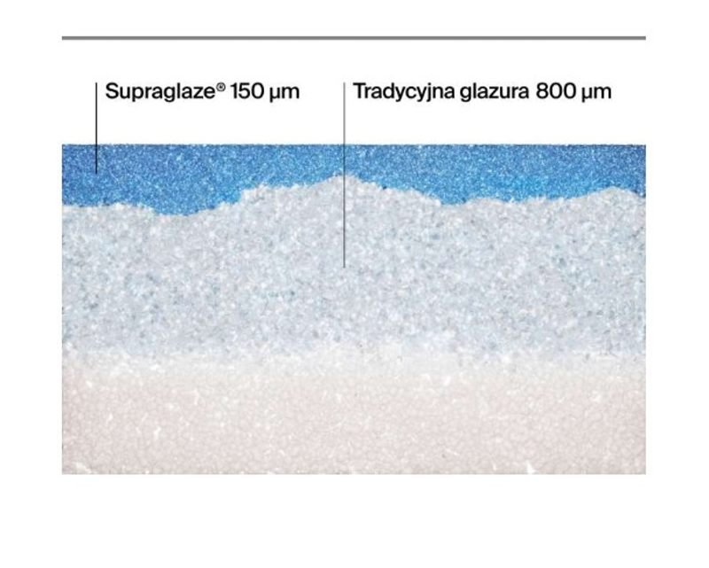 Vlastnosti povrchu: Supraglaze® – výrazne hladká, pórmi uzavretá povrchová vrstva s vyššou odolnosťou proti znečisteniu a vodnému kameňu
