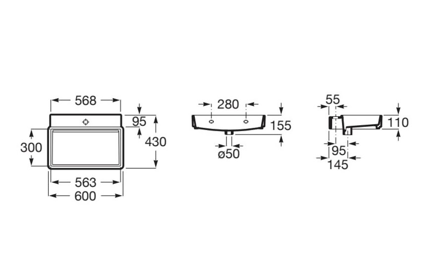 ✅ Rozmery (DxŠxV): 600 × 430 × 155 mm – univerzálne rozmery vhodné pre stredné kúpeľne.