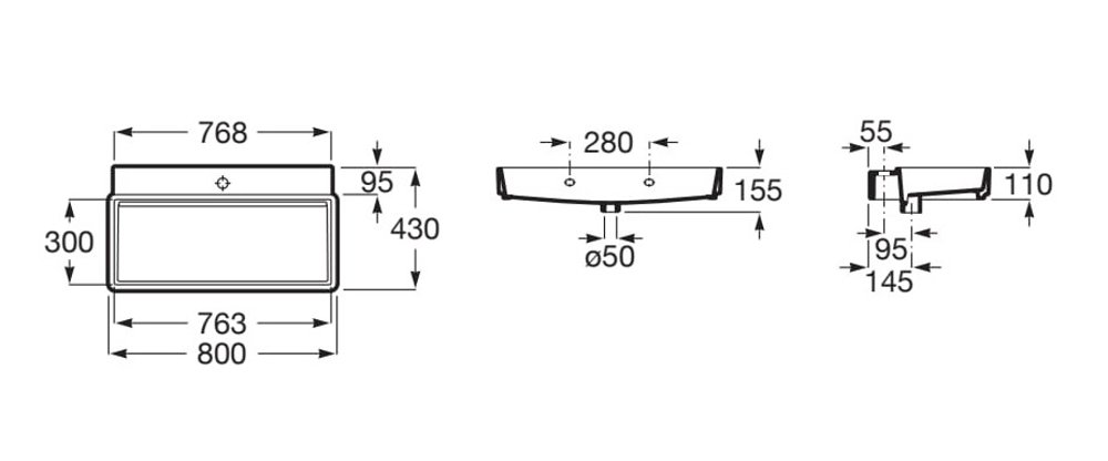 Rozmery (Š × H × V): 800 × 430 × 155 mm