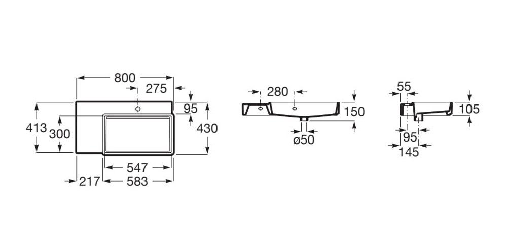 Rozmery (DxŠxV): 800 × 430 × 150 mm – optimálna veľkosť pre stredné kúpeľne.