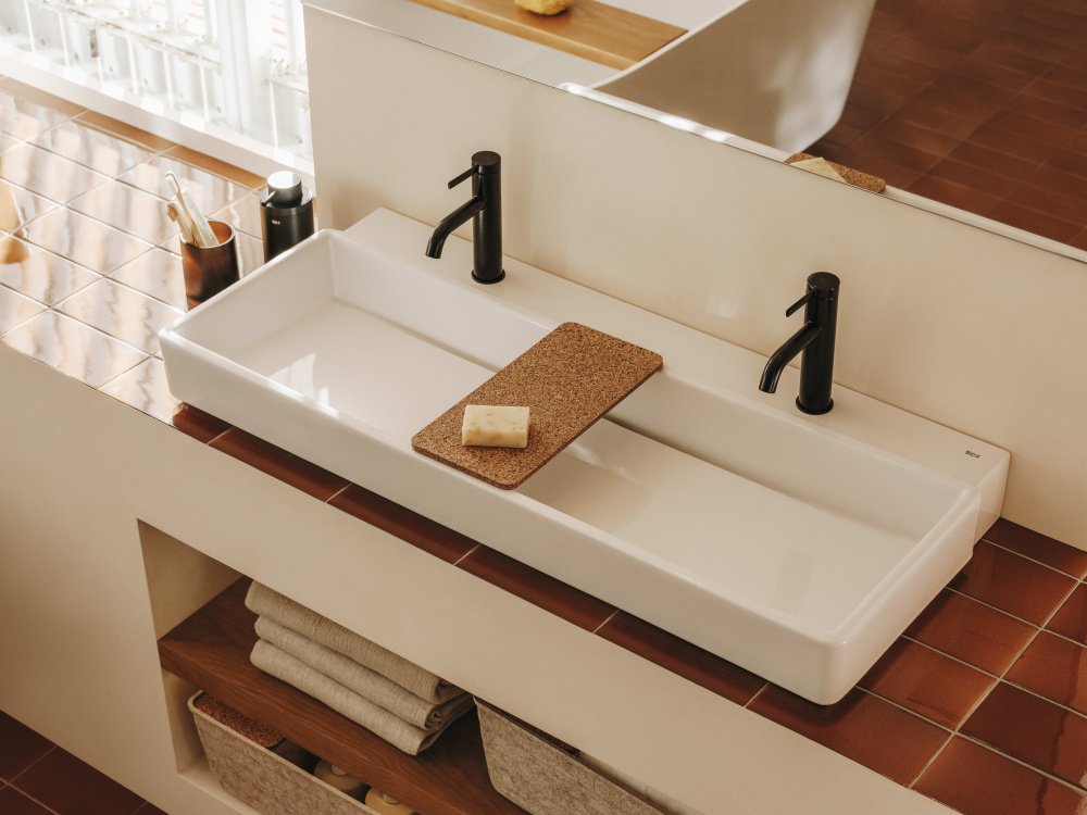 Elegantné a priestranné ROCA Tura SUPRAGLAZE® umývadlo 100 × 43 cm s dvoma otvormi na batériu je perfektným riešením pre dizajnové kúpeľne, ktoré chcú využívať dvojrúčky batérie alebo batérie s oddelenými ovládacími prvkami. Tento model sa pýši minimalistickým tvarom, pevnou sanitárnou keramikou a možnosťou montáže na stenu, do nábytku alebo na dosku podľa preferencií.