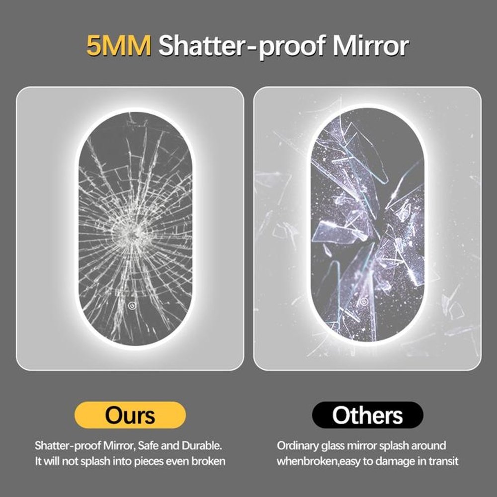 Zrkadlo je vybavené kvalitným integrovaným LED osvetlením typu 2835 (120 diód/m), ktoré zabezpečuje rovnomerné a dostatočne intenzívne osvetlenie. Vysoký index podania farieb CRI > 90 zaručuje prirodzené zobrazenie farieb, čo oceníte najmä pri líčení alebo každodennej starostlivosti o pleť.