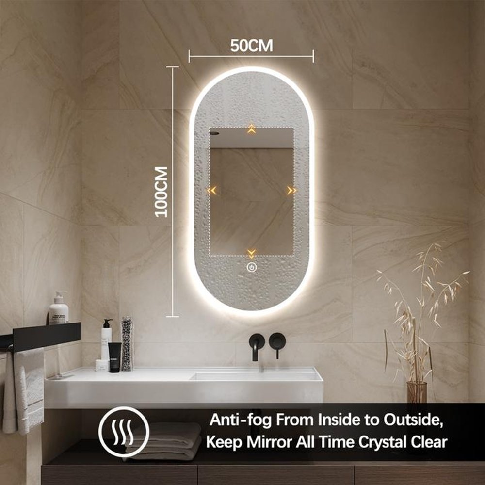 Some FUIME LED oválne zrkadlo 50 x 100 cm, vyhrievacia podložka CTL407-50-100 - 50 cm