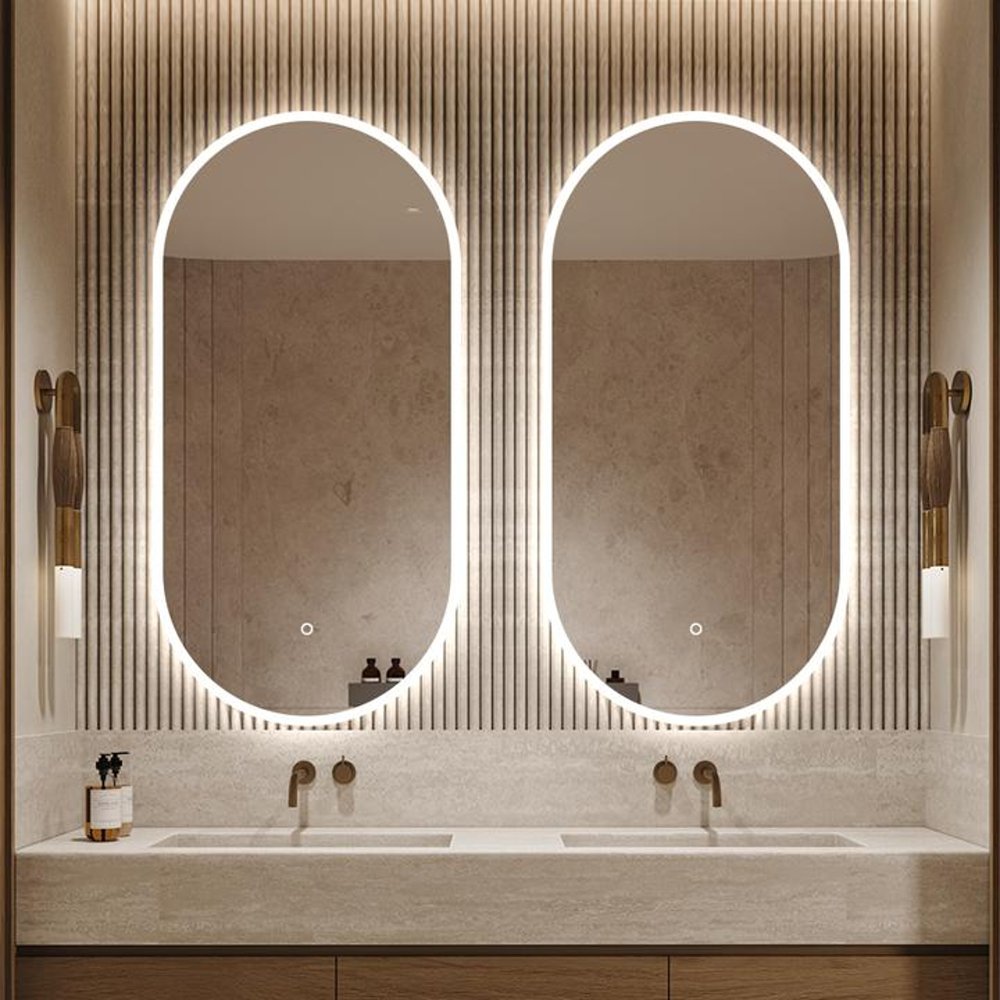 Kúpeľňové zrkadlo SOME FIUME v elegantnom oválnom dizajne s integrovaným LED osvetlením a vyhrievacou podložkou je ideálnym riešením pre modernú kúpeľňu. Ponúka dotykové ovládanie, možnosť zmeny farby svetla a funkciu proti zahmlievaniu (anti-fog). Bezrámové prevedenie s mrazenou hranou pôsobí minimalisticky a štýlovo, pričom kvalitné spracovanie zabezpečuje dlhú životnosť a komfort pri každodennom používaní.