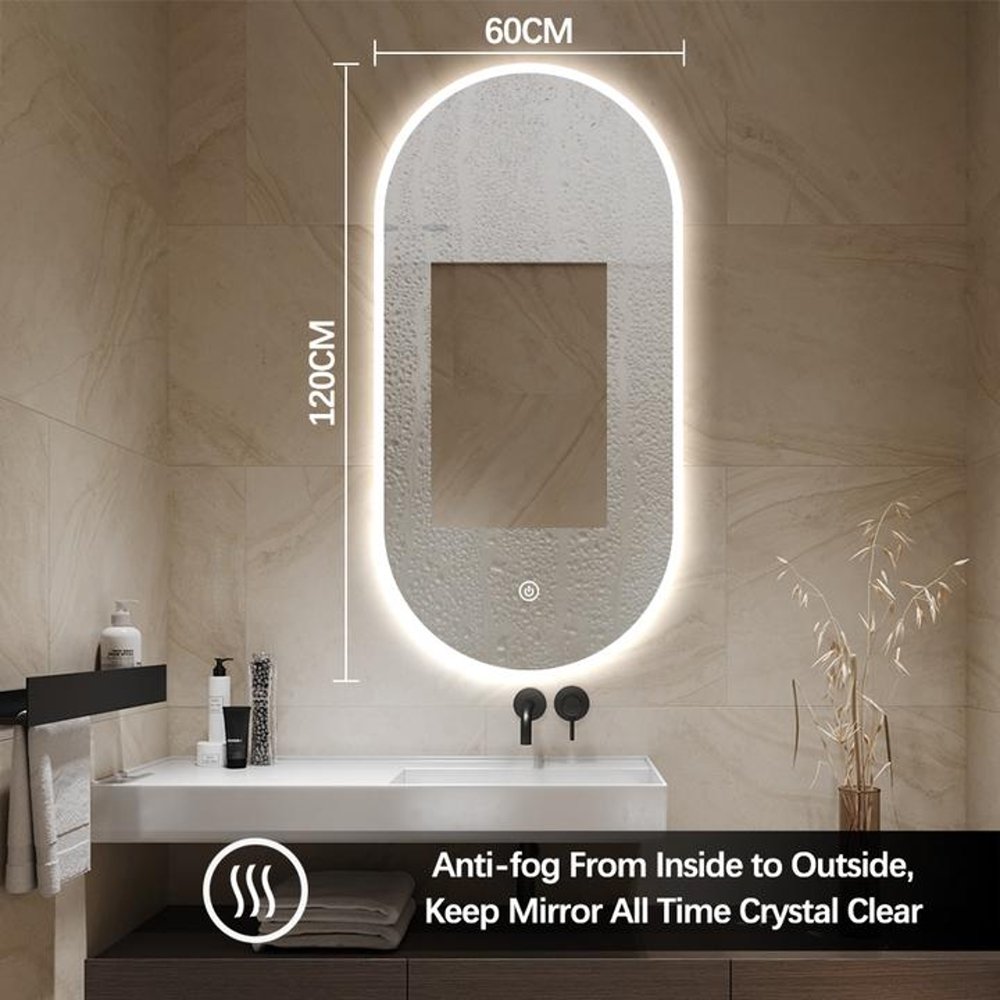 Some FUIME LED oválne zrkadlo 60 x 120 cm, vyhrievacia podložka CTL407-60-120 - 60 cm