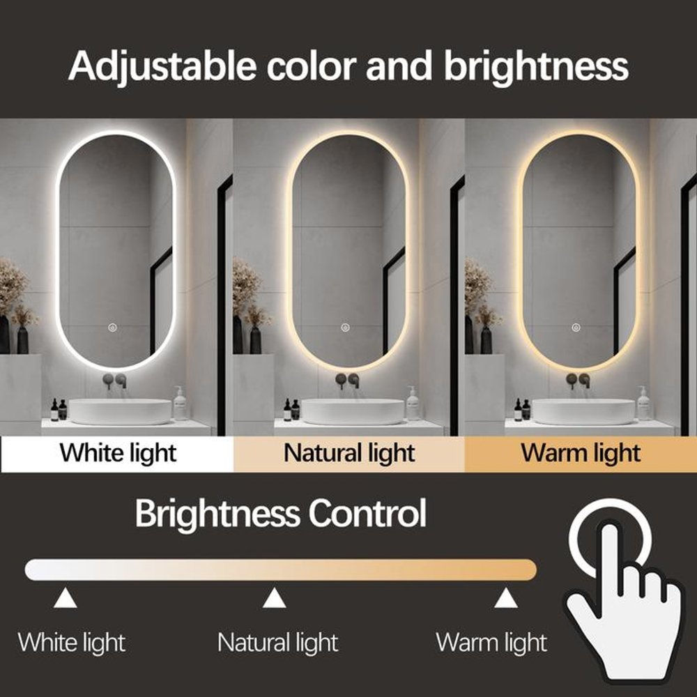 Kúpeľňové zrkadlo SOME FIUME v elegantnom oválnom dizajne s integrovaným LED osvetlením a vyhrievacou podložkou je ideálnym riešením pre modernú kúpeľňu. Ponúka dotykové ovládanie, možnosť zmeny farby svetla a funkciu proti zahmlievaniu (anti-fog). Bezrámové prevedenie s mrazenou hranou pôsobí minimalisticky a štýlovo, pričom kvalitné spracovanie zabezpečuje dlhú životnosť a komfort pri každodennom používaní.