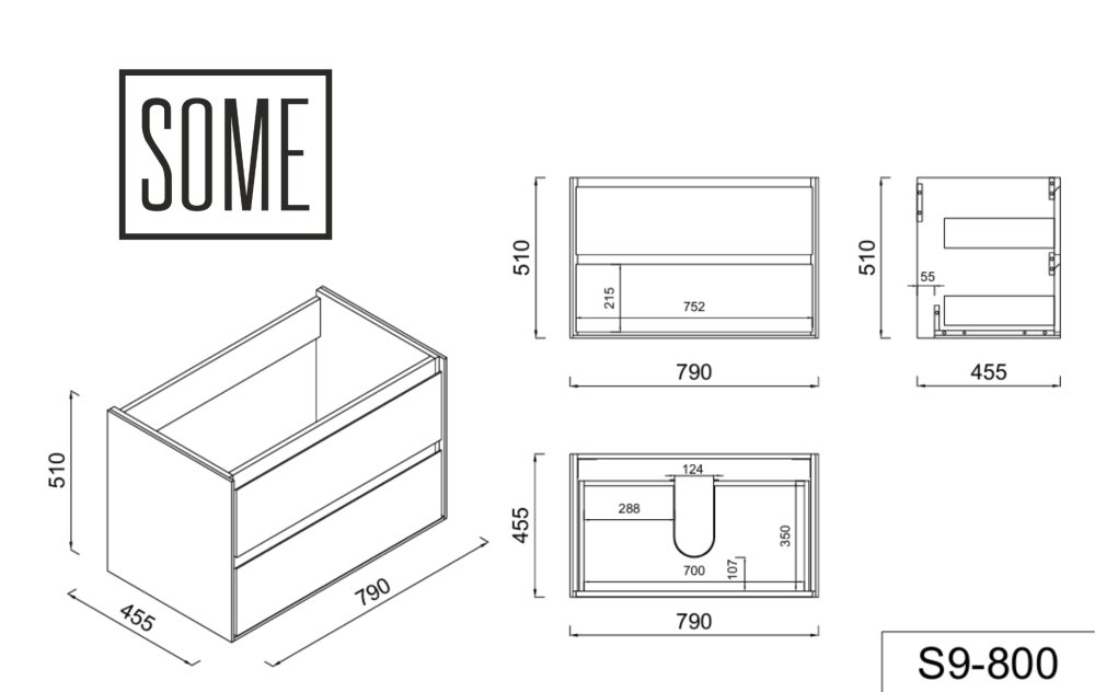 Rozmery: šírka 79,2 cm × hĺbka 45,5 cm × výška 51 cm. Materiál: MDF / laminovaná doska. Povrch: matný satén. Hmotnosť: 30 kg. Zásuvky s tichým dovieraním. Ideálna na stenu, šetrí priestor a dokresľuje elegantný vzhľad kúpeľne.