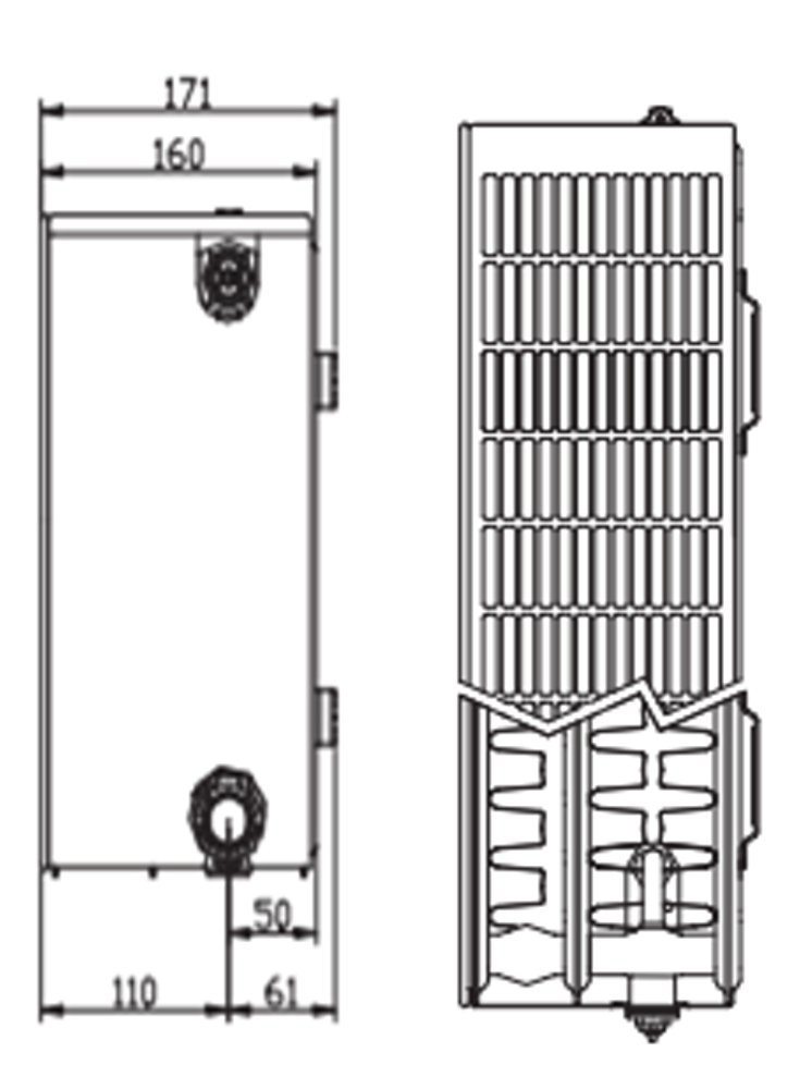 - postranné kryty s hornou mriežkou tvoria kompaktnú jednotku radiátora