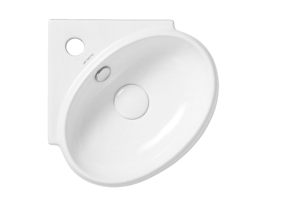 Uptrend – Rohové umývadlo na stenu Amur 37 × 38,5 cm biele lesklé TR4518 je funkčné riešenie pre malé kúpeľne alebo toalety, kde je každý centimeter dôležitý. Vďaka kompaktnému rohovému tvaru efektívne využíva priestor, pričom si zachováva elegantný dizajn. Vyrobené z kvalitnej keramiky s povrchovou úpravou UP-CLEAN, ktorá uľahčuje čistenie a chráni povrch pred usadeninami. Ideálne pre moderné aj klasické kúpeľne.