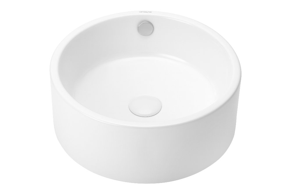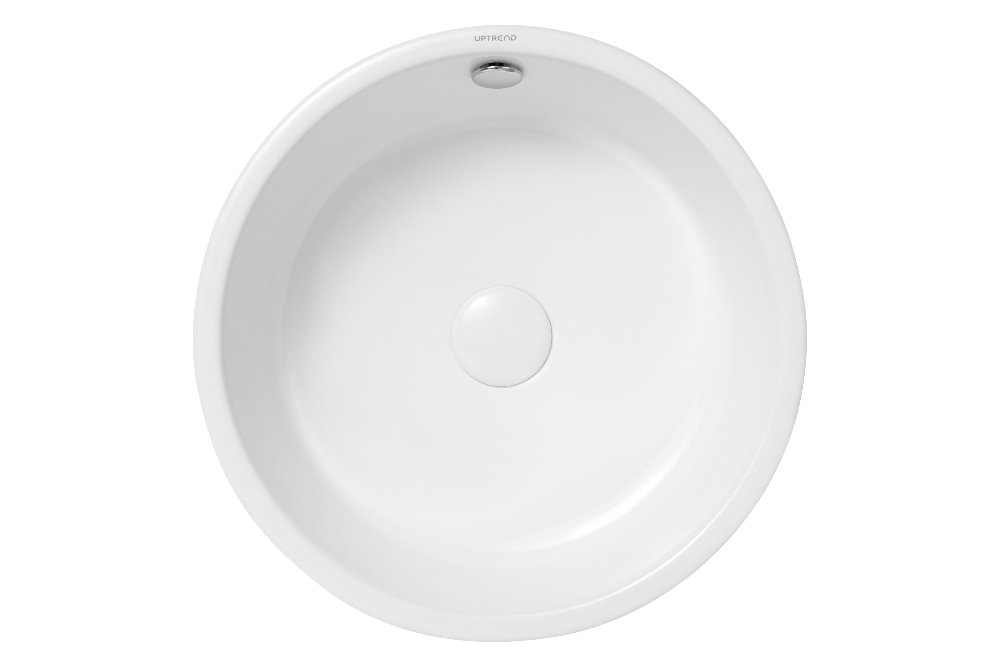 Uptrend – Umývadlo na dosku Neo 41,5 × 41,5 cm lesklé s prepadom TR4570 je moderné keramické umývadlo s elegantným, čistým tvarom a priestrannou misou pre maximálne pohodlie pri každodennom používaní. Je vybavené integrovaným prepadom, ktorý zvyšuje jeho praktickosť. Povrchová úprava UP-CLEAN chráni keramiku pred usadzovaním nečistôt a uľahčuje čistenie. Kombinácia funkčnosti a štýlu robí z modelu Neo ideálnu voľbu pre moderné kúpeľne. Umývadlo je bez otvoru pre batériu, vhodné pre batérie montované do dosky alebo na stenu.