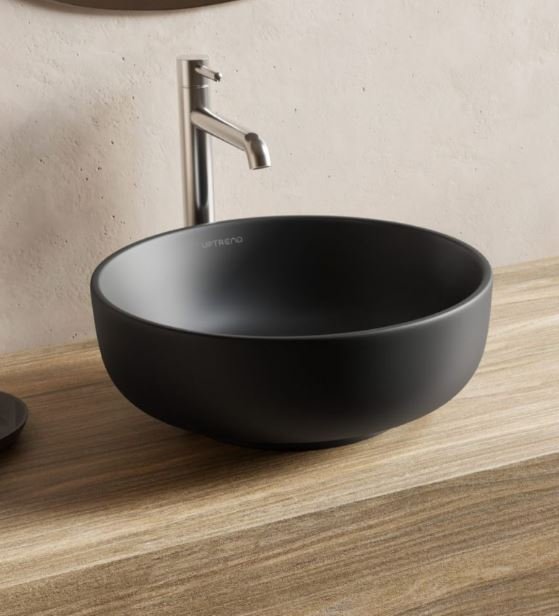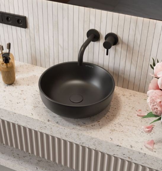 Uptrend – Umývadlo na dosku Sofia L 38,5 × 38,5 cm čierne matné TR4003-2-U18 predstavuje spojenie klasickej formy a výraznej modernej estetiky. Kvalitná keramika s matným povrchom zaujme svojou nadčasovou eleganciou a odolnosťou voči poškodeniu. Povrchová úprava UP-CLEAN minimalizuje usádzanie nečistôt a vodného kameňa, čím zaručuje jednoduchú údržbu a dlhodobú čistotu. Okrúhly tvar s priestrannou miskou zaisťuje komfort pri každodennom používaní. Ideálne pre kúpeľne, ktoré spájajú dizajn a funkčnosť.