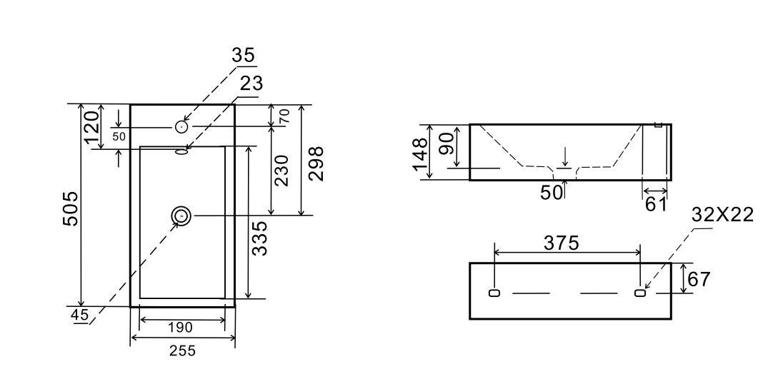 | Typ / kategória | Umývadlo na stenu / na dosku |