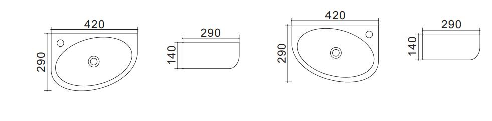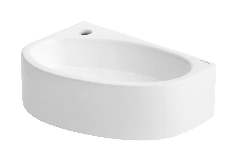 Kompaktné ľavé nástenné umývadlo z kolekcie pre menšie kúpeľne a toalety. Minimalistický dizajn umožňuje inštaláciu aj v úzkych priestoroch bez straty funkčnosti.