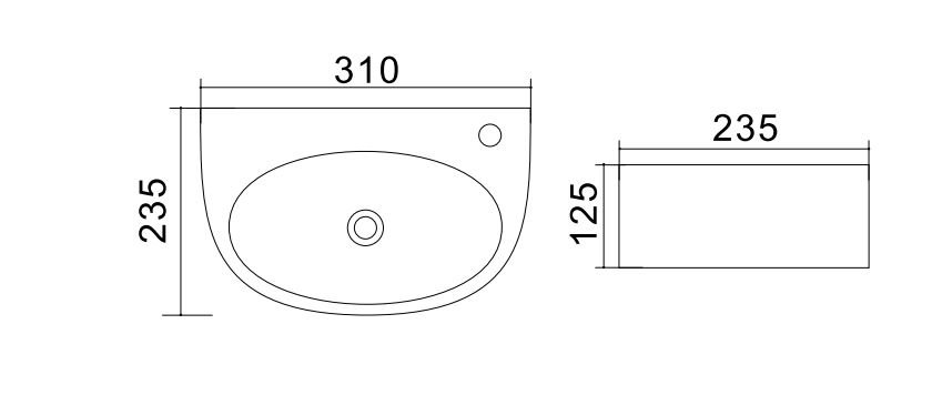 Mimoriadne malé pravé umývadlo vhodné do miniatúrnych kúpeľní a WC. Vyniká úsporným dizajnom a funkčnosťou napriek kompaktným rozmerom.