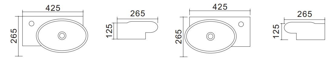Úzke a elegantné umývadlo vhodné do menších kúpeľní a toaliet, určené pre montáž na stenu.