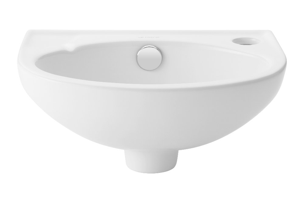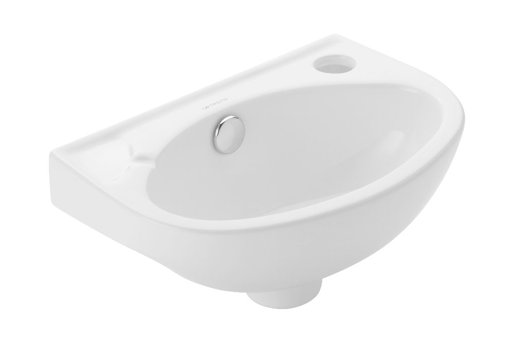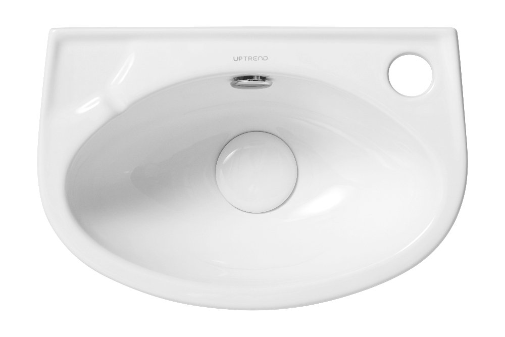 Umývadlo Uptrend – Ines 36 × 24 cm biele lesklé pravé TR41203 patrí do série miniatúrnych umývadiel určených pre úzke a náročné priestory. Vďaka malej hĺbke je ideálne do menších kúpeľní či WC, kde je potrebné šetriť miesto bez kompromisu v komforte používania. Vyrobené je z kvalitnej keramiky s povrchovou úpravou UP-CLEAN, ktorá zjednodušuje čistenie, chráni povrch pred usadeninami a predlžuje jeho životnosť.