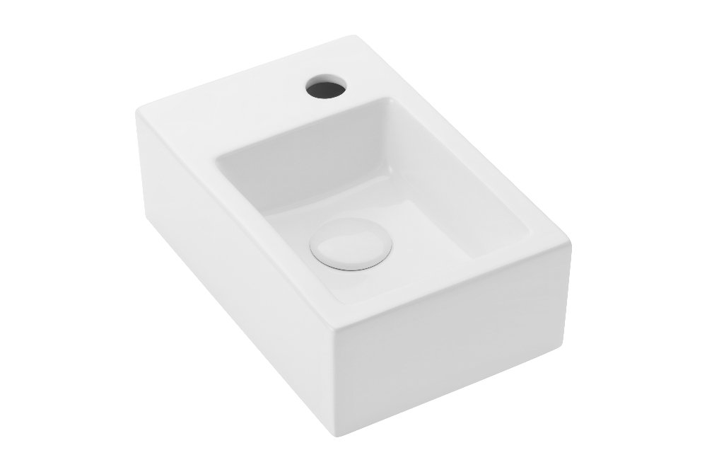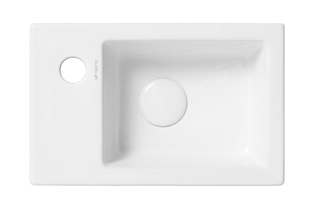 Umývadlo Uptrend – Rosa L 37 × 23,5 cm biele lesklé TR4331A (ľavé) je kompaktné riešenie pre priestory, kde je potrebné šetriť miestom. Napriek malým rozmerom si zachováva plnú funkčnosť klasického umývadla. Vyrobené je z vysoko kvalitnej keramiky s povrchovou úpravou UP-CLEAN, ktorá odpudzuje nečistoty, chráni pred usadzovaním vodného kameňa a uľahčuje údržbu. Elegantný minimalistický dizajn ho predurčuje pre moderné kúpeľne aj toalety.