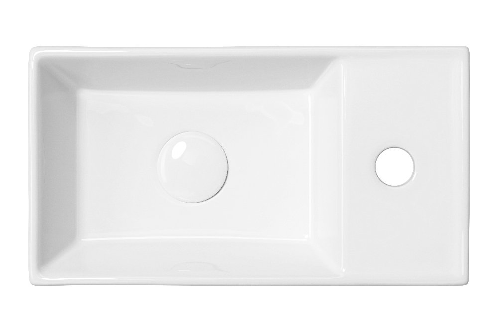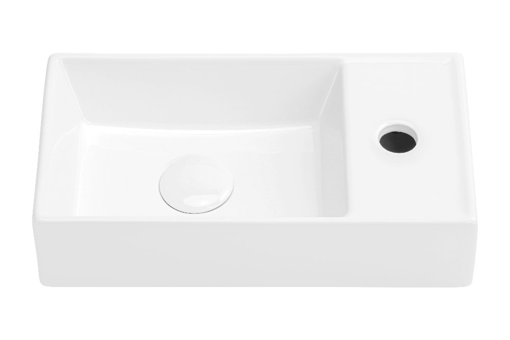 Kompaktné keramické umývadlo vhodné na kúpeľňový nábytok alebo dosku, s otvorom pre batériu – možné umiestniť zľava aj sprava.