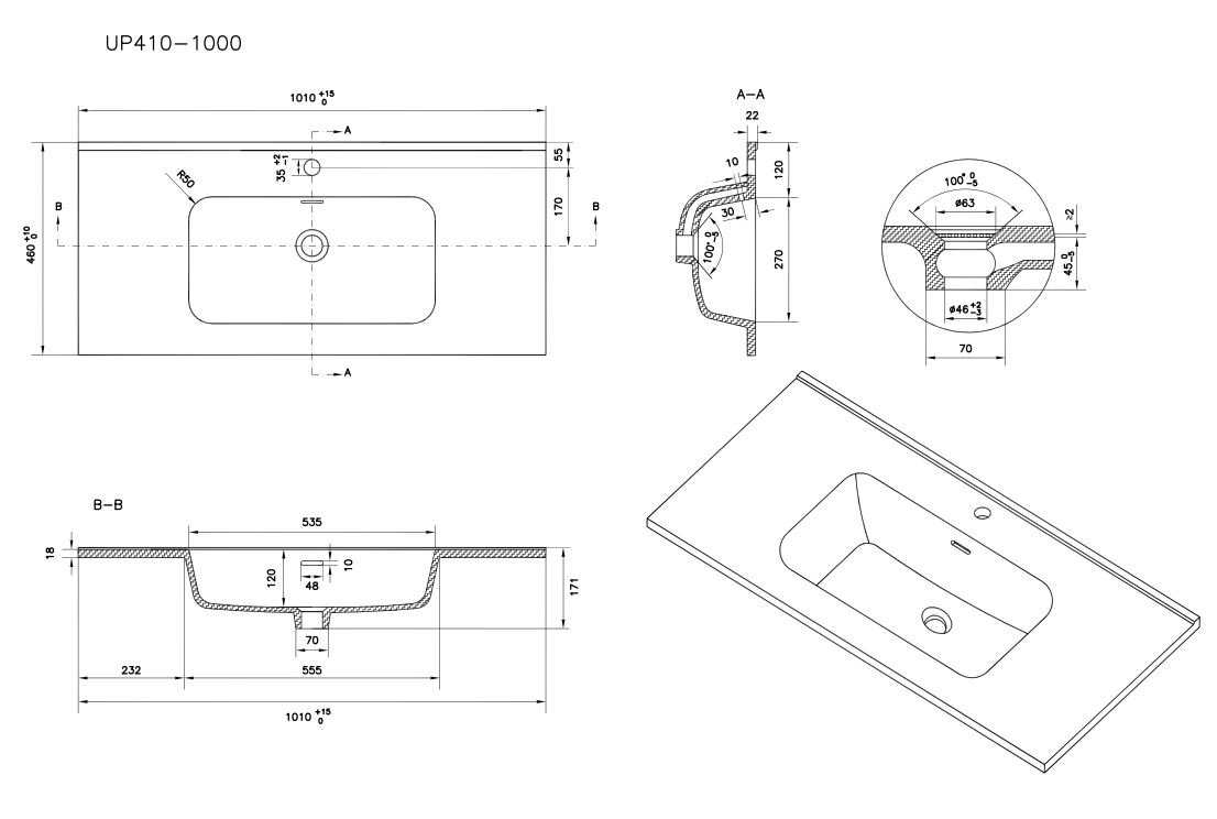 Umývadlo Uptrend – Venta 100 × 47 × 15,5 cm biele lesklé UP410-1000 spája moderný dizajn s funkčnosťou a kvalitou spracovania. Je vyrobené z vysokokvalitnej keramiky a ošetrené technológiou UP-CLEAN, ktorá chráni povrch pred usadzovaním nečistôt a vodného kameňa. Disponuje praktickou odkladacou plochou a elegantným tvarom vhodným pre rôzne typy kúpeľní. Možno ho namontovať do nábytku alebo na dosku, čím ponúka flexibilitu pri inštalácii.
