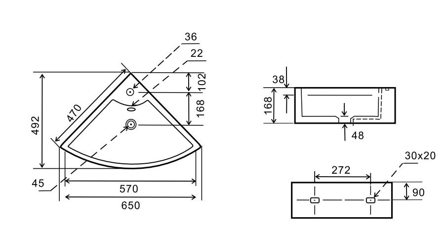 | Typ / kategória | Rohové umývadlo na stenu |